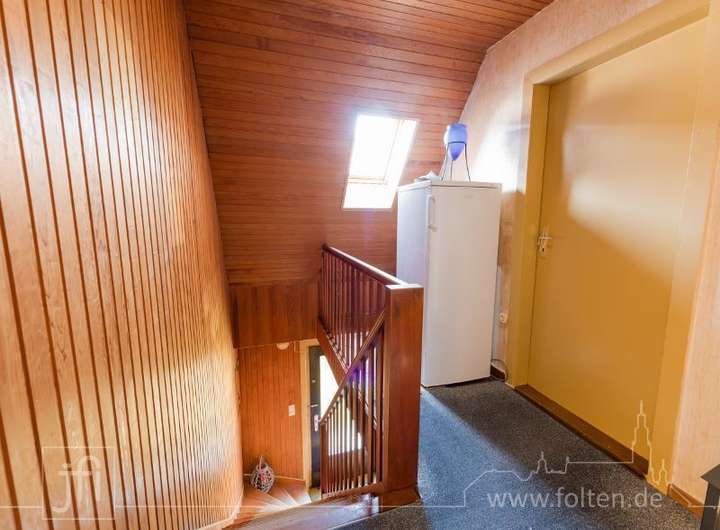 Im Emsdorf Jemgum bieten wir Ihnen dieses bezugsfreie Einfamilienhaus auf einem schönen, großen Gartengrundstück zum Kauf an. Das Haus wurde 1959 auf einem 982 m² großen Grundstück in massiver Bauweise errichtet und bietet insgesamt sieben Zimmer auf ca. 95 m² Wohnfläche. Im Erdgeschoss finden Sie das Wohnzimmer, das Schlafzimmer, das Esszimmer, die Kochküche und das Bad mit Sitzbadewanne. Über die geschlossene Holztreppe erreichen Sie das Dachgeschoss mit insgesamt vier Zimmern, wovon eines ein Durchgangszimmer ist. Vorräte können kühl im vorhandenen Kellerraum gelagert werden.