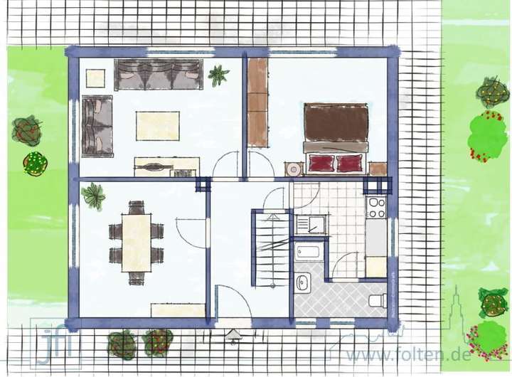 Auf dem Grundstück finden Sie Gehölzraritäten wie Echte Feige, Mammutbaum, Gingko sowie dauerblühenden Staudenbeete, eine naturnahe Sichtschutzbepflanzung im Vorgarten, einen kleinen Gemüse- und Kräutergarten, Rasenflächen und vielem mehr - ein Highlight für Gartenliebhaber. Aber auch andere Nutzungen sind denkbar. So ist das Grundstück auch von der hinter dem Haus verlaufenden Straße aus erreichbar. Sie könnten dort z.B. einen Stellplatz für Anhänger, Wohnmobil, Bootstrailer o.ä. anlegen, selbst eine rückwärtige Bebauung wäre unter Umständen denkbar.