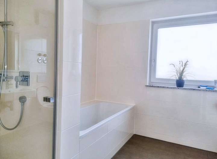 - Tageslichtbadezimmer mit Wanne, Dusche, WC und Waschmaschinenanschluss