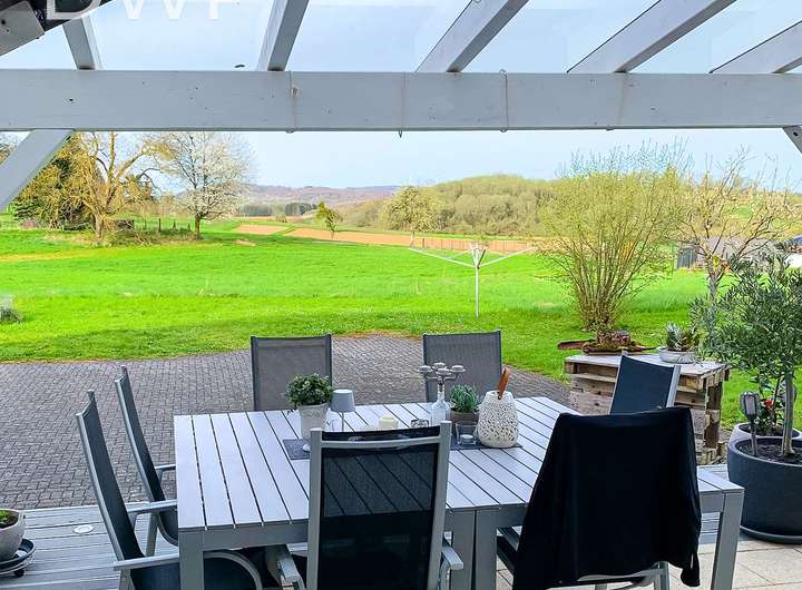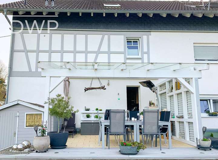 - Geräumige und überdachte Terrasse (Pergola mit Glasdach)