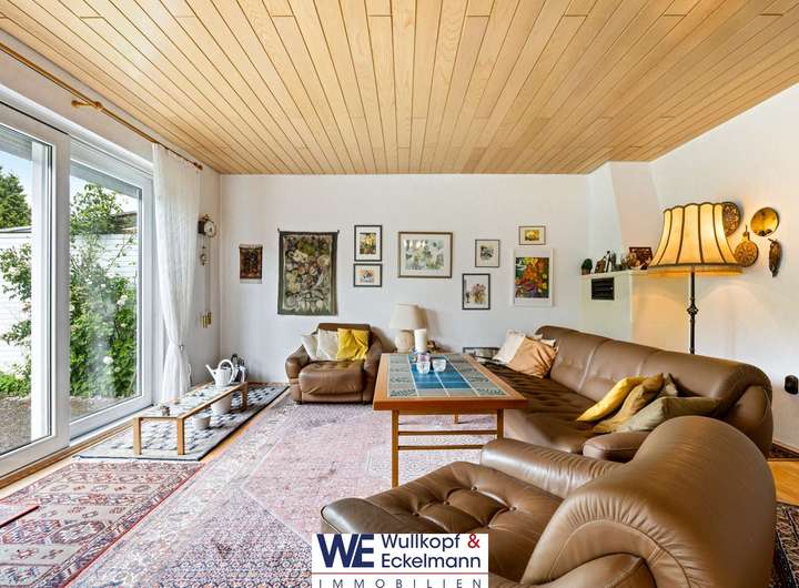 Das Haus empfängt Sie im Erdgeschoss mit einem freundlichen Wohn- und Essbereich, der durch große Fenster viel Licht hereinlässt und einen herrlichen Blick in den liebevoll angelegten Garten freigibt. Die Übergänge zwischen innen und außen sind fließend: Von hier aus gelangen Sie direkt auf die Terrasse – ideal für sommerliche Frühstücke im Grünen, entspannte Nachmittage im Liegestuhl oder das Toben der Kinder auf dem eigenen Grundstück. Eine praktische Markise spendet zudem im Hochsommer ausreichend Schatten. Der Garten ist ein kleines Idyll: gepflegt, ruhig, grün und wunderbar geeignet zum Entspannen, Spielen und Gärtnern.