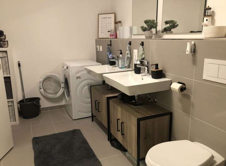 Der offene Wohn- und Essbereich mit integrierter moderner Einbauküche bildet das Herzstück der Wohnung. Von hier aus gelangen Sie direkt auf den Balkon, der zu entspannten Stunden im Freien einlädt. Neben dem Schlafzimmer steht ein weiteres Zimmer zur Verfügung, das sich ideal als Büro oder Gästezimmer eignet. Das moderne Duschbad ist hochwertig ausgestattet und stilvoll gefliest. In allen Wohnräumen sorgt der Parkettboden für eine warme Note. Ein Kellerabteil bietet zusätzlichen Stauraum. Bei Bedarf kann ein Tiefgaragenstellplatz mit angemietet werden.