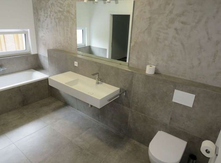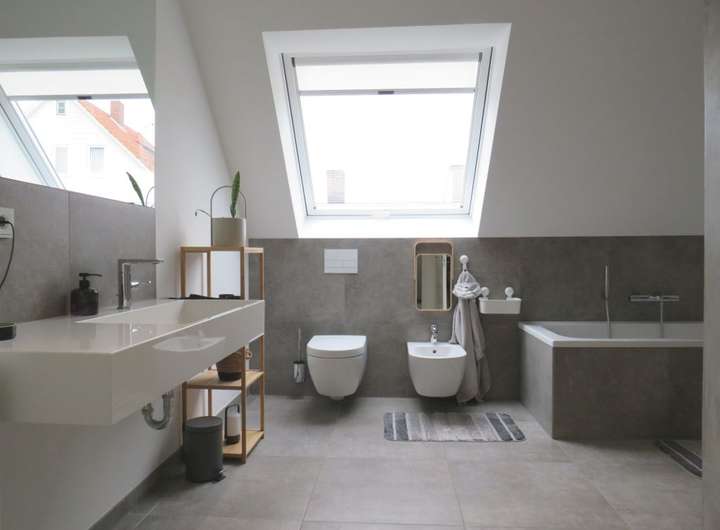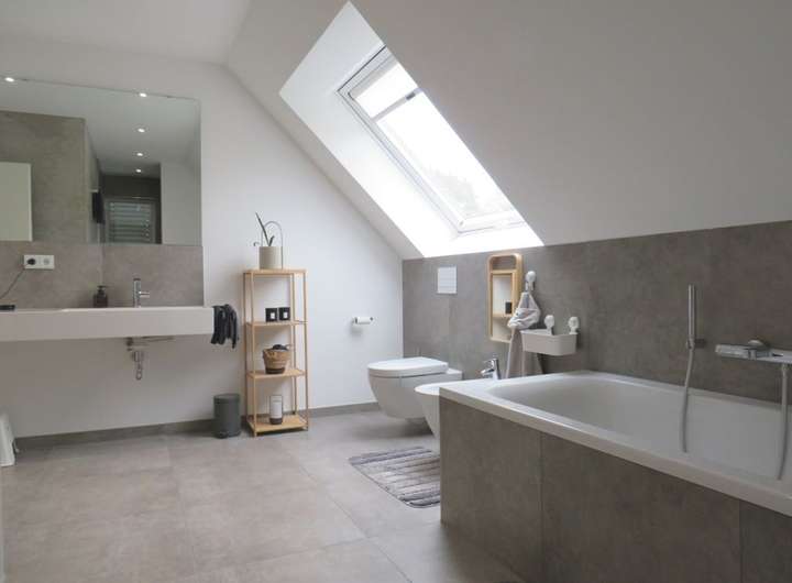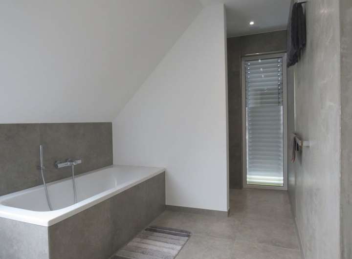 Bad im OG: ebenerdige Dusche, Badewanne, WC, Fenster