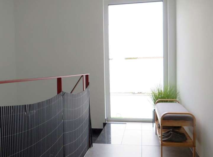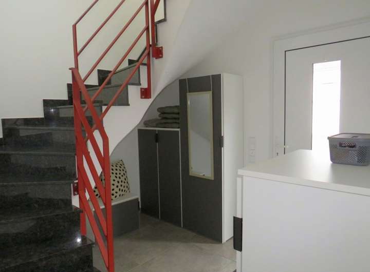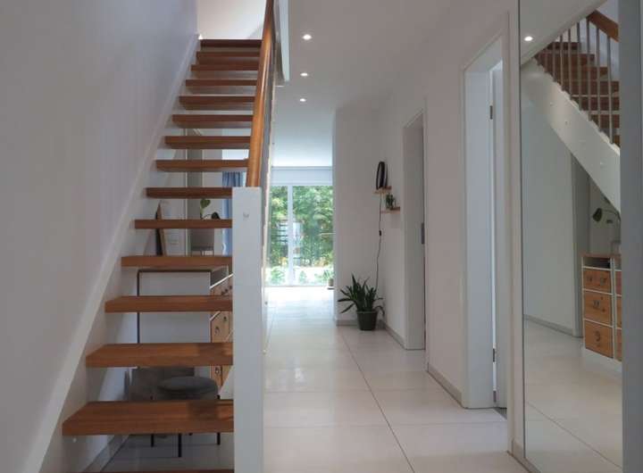 Ein Treppenhaus verbindet beide Wohneinheiten. Von hier ist der Hausanschluss im EG für beide Wohneinheiten zugänglich.
