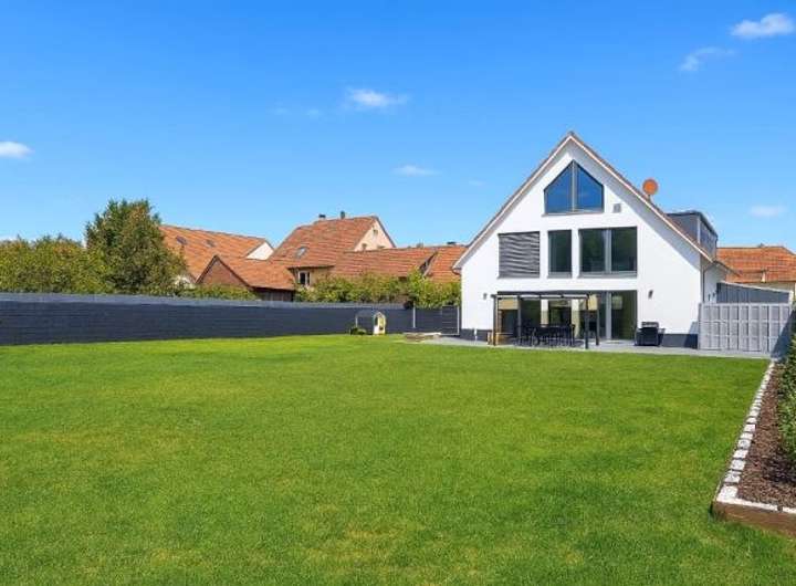 Über den rückliegenden Bereich erstreckt sich das weitläufige Gartengrundstück. Hier laden an schönen Sommertagen eine Süd-Westterrasse sowie viel Platz für Hobby und Freizeit zum Erholen und Verweilen ein.