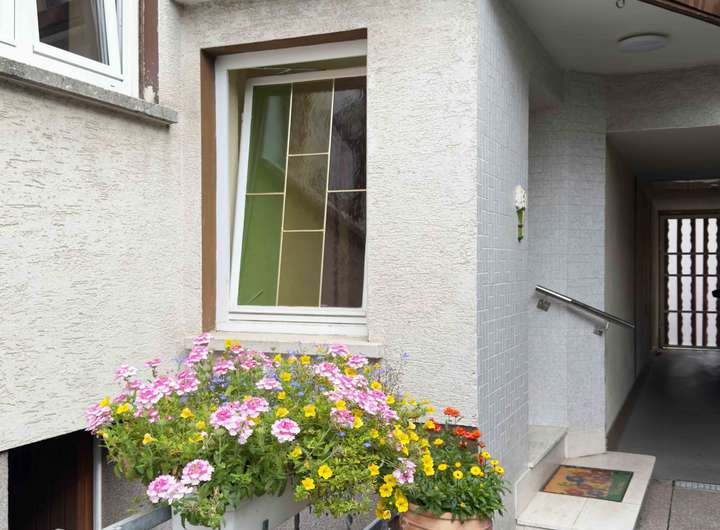 Drei Wohnungen befinden sich im 1920 errichteten Haupthaus, eine Wohnung befindet sich im 1976 errichteten Anbau.