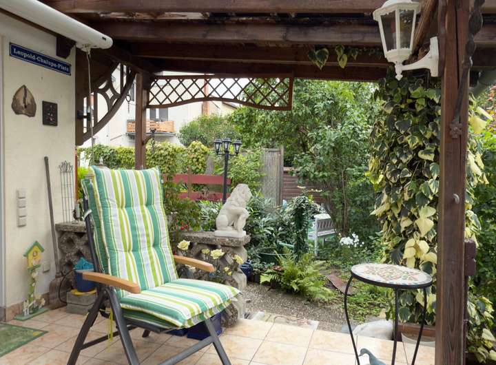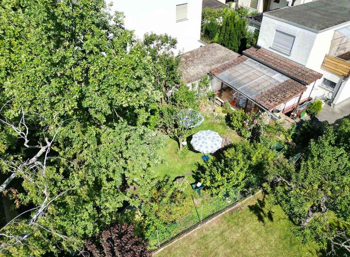 Diese hübsche und sonnige Wohnung - die den Charakter eines kleinen Hauses hat - verfügt über eine Terrasse, einen Balkon und einen sehr schönen eingewachsenen Garten.