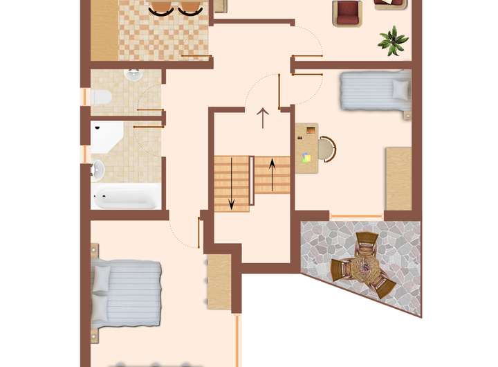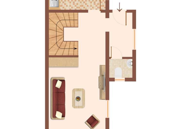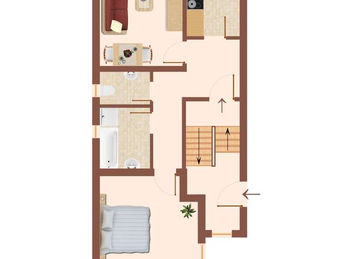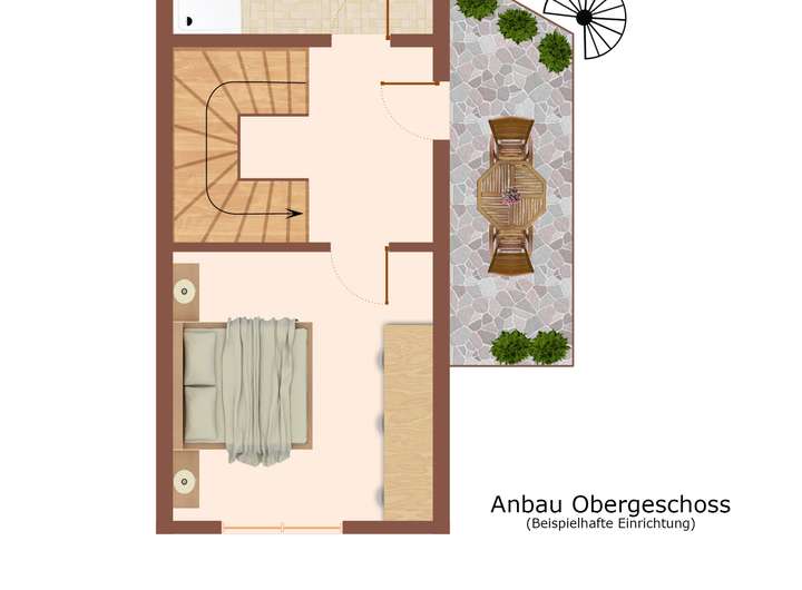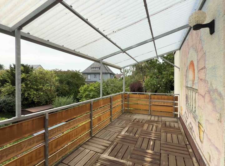 Im Anbau befindet sich eine 2,5 Zimmer Wohnung - über zwei Etagen.