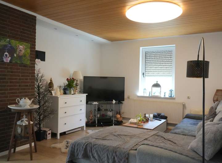 Profitieren Sie hier von 6 Zimmern und einer Wohnfläche von rund 160 m², die sich über 2 Etagen erstreckt - diese sind über eine Holztreppe verbunden. Nicht nur helle und freundliche Räumlichkeiten, ein vorteilhafter Grundriss und ein großzügiger Wintergarten mit Kamin zeichnen die charmante Immobilie aus.
