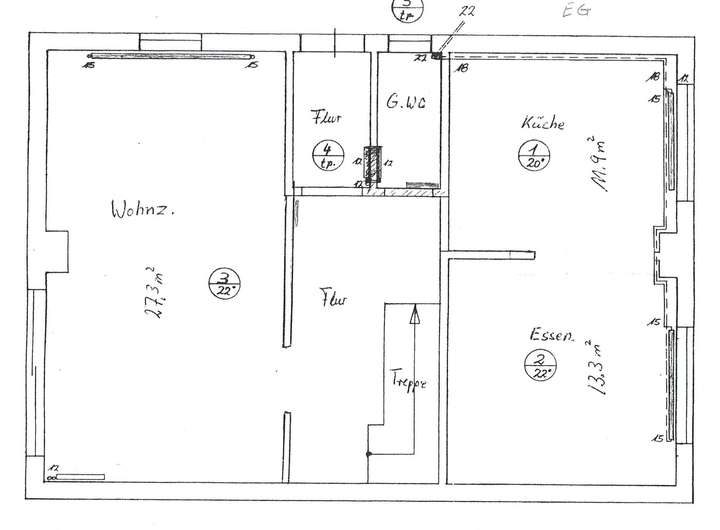 Die ursprünglich im Jahr 1927 erbaute Immobile wurde Anfang der 80er- Jahren um eine Etage erweitert bzw. aufgestockt und modernisiert. Dabei wurde die komplette Haustechnik, die Fassade, das Dach sowie Fensterelemente erneuert sowie das Bad und WC modernisiert. Die Immobilie wurde fortlaufend instandgehalten, weist jedoch teilweise Renovierungsbedarf auf.