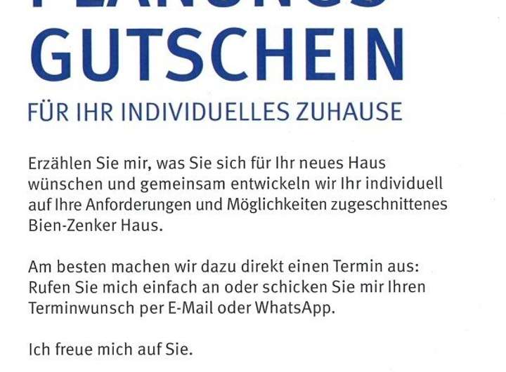 Erzählen Sie mir, was Sie sich für Ihr neues Haus wünschen und gemeinsam entwickeln wir Ihr individuell auf Ihre Anforderungen und Möglichkeiten zugeschnittenes Bien-Zenker Traumhaus.