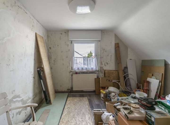 Im Ober- und Dachgeschoss besteht weiterhin gleichbleibender Renovierungs- und Ausbaubedarf – beide Ebenen sind in einem ähnlichen Zustand und bieten Raum für individuelle Gestaltung und Ausbau nach eigenen Vorstellungen.