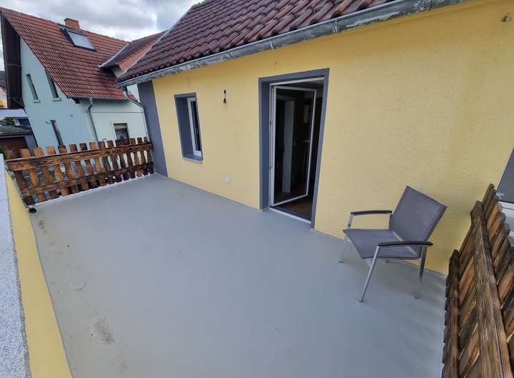 Die lehmverputzten Wände sorgen für ein angenehmes Raumklima, während die gehobene Innenausstattung und das hochwertige Finish ein wohnliches Ambiente schaffen. Ein großzügiger Balkon lädt zum Verweilen ein, und der Außenbereich wird voraussichtlich bis Januar 2026 fertiggestellt.