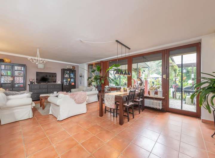 Der gut geschnittene Wohnbereich stellt das Zentrum des Hauses dar – dieser besticht mit großen Fensterelementen sowie Platz für Familie und Freunde. Von hier haben Sie direkten Zugang auf die überdachte Terrasse in Südausrichtung, welche zu sonnigen Stunden einlädt.