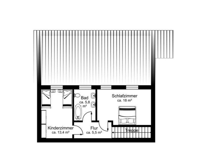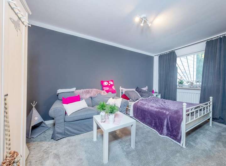 Das dritte und letzte Zimmer bietet als Kinder-, Gäste- oder auch Arbeitszimmer vielfältige Nutzungsoptionen.