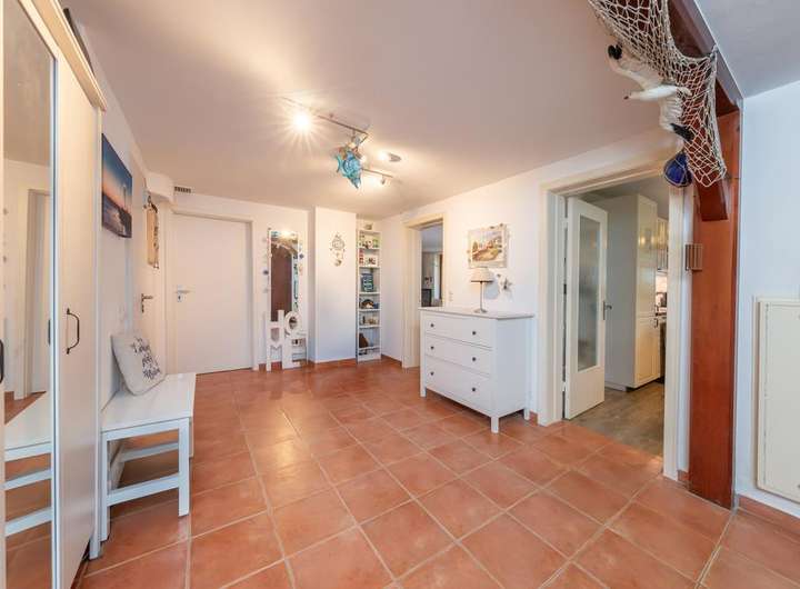 Über einen überdachten Hauseingang gelangen Sie in den großzügigen Flurbereich, welcher Sie wärmstens empfängt und ausreichend Platz für eine Garderobe bietet.