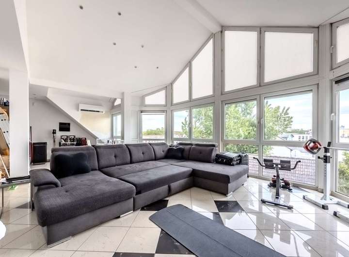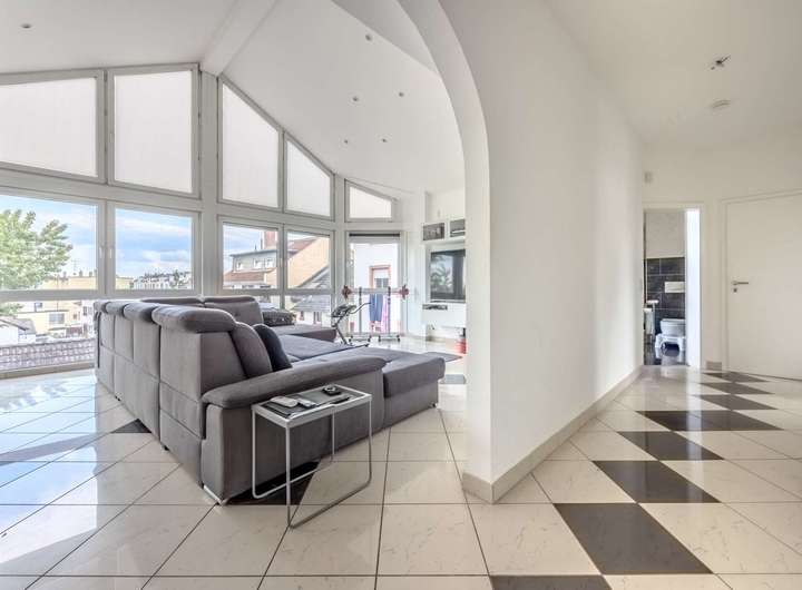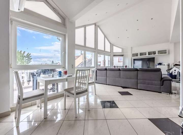 Diese charmante Dachgeschosswohnung bietet auf ca. 105 m² Wohnfläche eine besondere Wohnatmosphäre verteilt auf drei Zimmern, einer offenen Küche, einem Tageslichtbad mit Badewanne sowie ein großzügiges Wohnkonzept. Die Highlights der Wohnung sind die große Glasfront im Wohnzimmer, hohe Decken und der ca. 8 m² große Balkon, der mit seinen weißen Balustraden einen mediterranen Charme versprüht – der perfekte Ort, um den Tag entspannt ausklingen zu lassen. Ideal für junge Paare oder kleine Familien, die Wert auf Raum, Qualität und Atmosphäre legen.