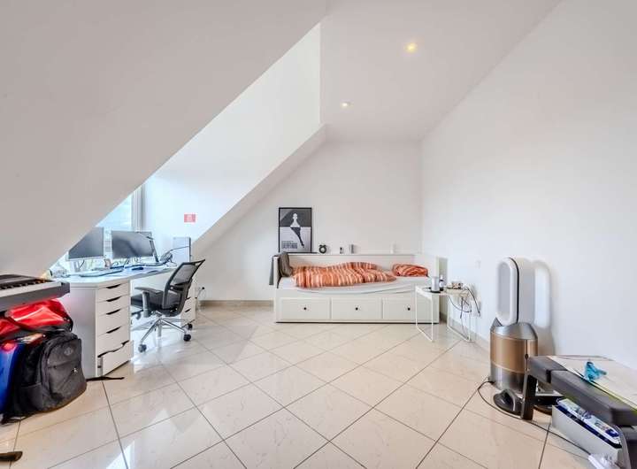 Die zahlreichen bodentiefen Fenster und hohen Decken sorgen für ein helles Wohnambiente und unterstreichen den modernen Charakter der Wohnung. Die durchdachte Raumaufteilung bietet vielseitige Nutzungsmöglichkeiten und ausreichend Platz zum Wohnen und Entspannen. Der Flur bietet genügend Stauraum durch einen Einbauschrank sowie eine Abstellkammer und Platz für eine Garderobe. Die Fußbodenheizung garantiert eine gleichmäßige und angenehme Wärmeverteilung.
