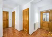 Das Obergeschoss erreichen Sie über ein helles Treppenhaus. Hier befindet sich eine großzügige Hauptwohnung mit fünf Zimmern, darunter drei Schlafzimmer, eine separate Küche mit Speisekammer sowie ein modernisiertes, helles Tageslichtbad. Der große Wohnbereich bietet Zugang zum Balkon mit schönem Ausblick. Über eine Außentreppe gelangen Sie zudem direkt in den Gartenbereich.