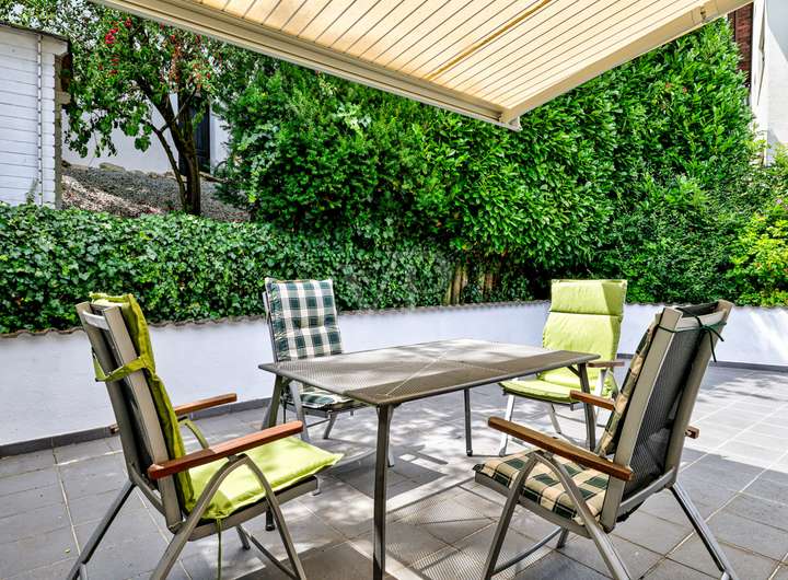 Die angeschlossene Terrasse bietet einen ruhigen Ort zum Frühstücken, für kleine Auszeiten zwischendurch oder entspannte Abende im Freien.