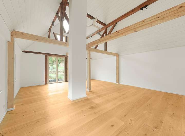 Bereits beim Betreten spürt man die besondere Ausstrahlung dieses Hauses. Der authentische Landhausstil mit seinen warmen Materialien, den sichtbaren alten Balken und dem charmanten Mix aus Alt und Neu verleiht dem Haus eine einladende und behagliche Atmosphäre. Die sorgfältige Modernisierung verbindet gekonnt die traditionelle Bauweise mit hochwertigen, zeitgemäßen Ausstattungsdetails – ein Zuhause, das sowohl stilvoll als auch gemütlich ist.