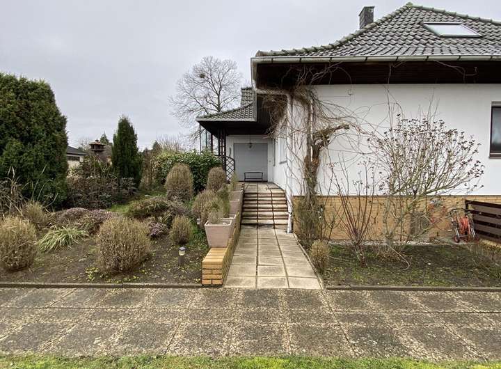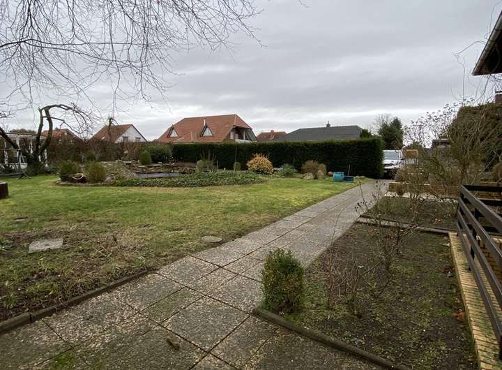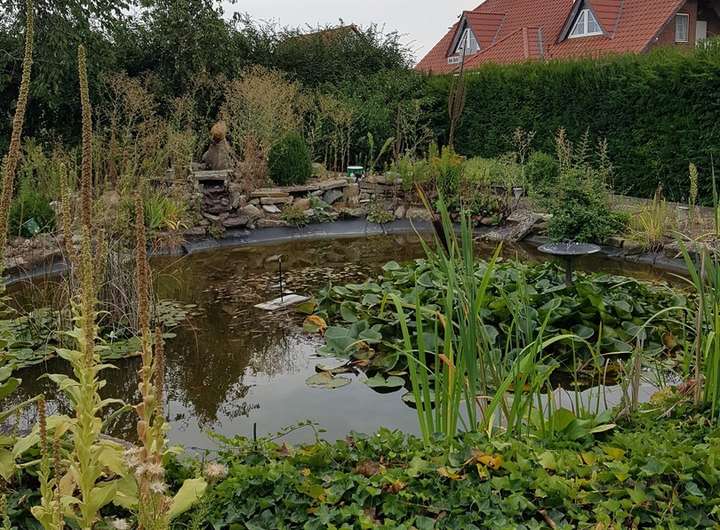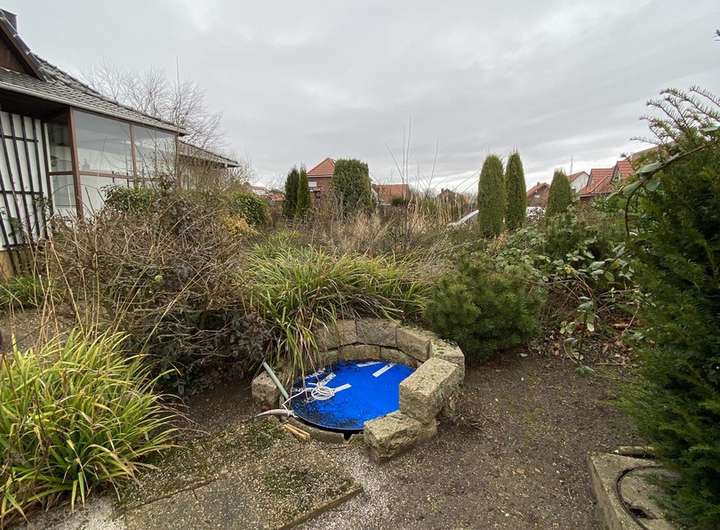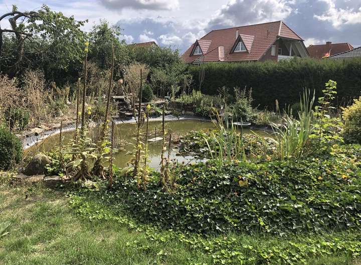 Der große Garten bietet unterschiedlichste Möglichkeiten und ist mit einem zauberhaften Teich ausgestattet. Sodass man auf der kleinen Terrasse mit Zugang zum Wohnzimmer, jeden Sommerabend gemütlich mit einem schönen Ausblick in den Garten genießen kann.