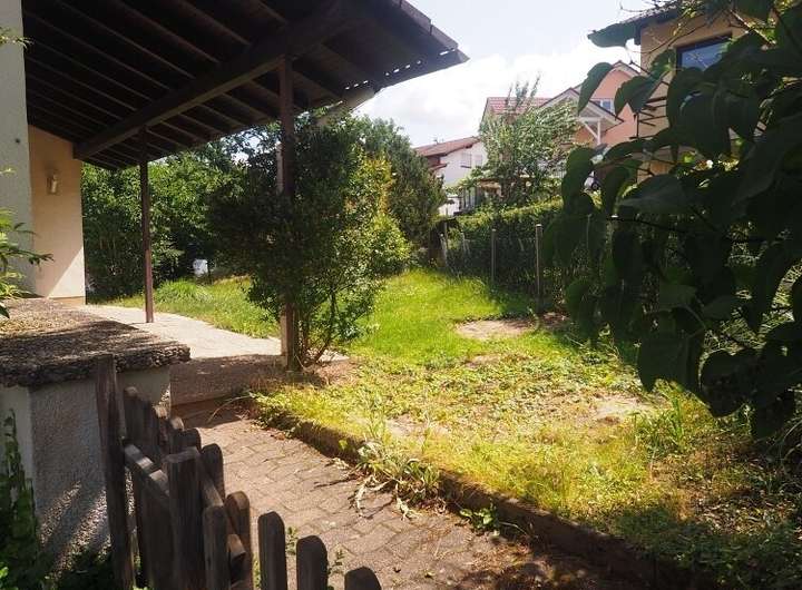 Zum Haus gehören zwei Garagen, von denen derzeit eine an die Mieter der unteren Wohnung vermietet ist. Jede Wohneinheit verfügt über einen eigenen Gartenanteil - die obere Wohnung nutzt den Bereich oberhalb des Hauses, die untere Wohnung den zur Straße hin gelegenen Teil.