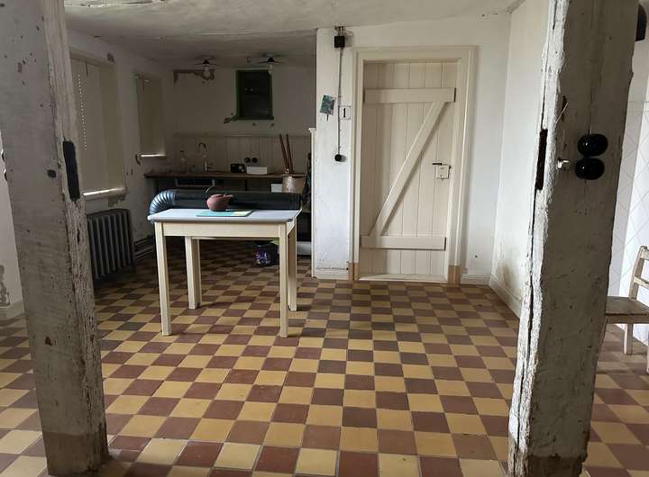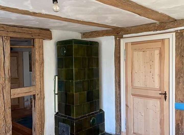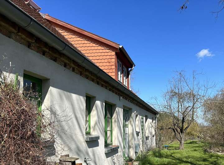 Das Cottage verbindet auf sympathische Weise historischen Charakter mit modernem Komfort. Das ausbaubare Satteldach in Biberschwanz-Doppeldeckung, maßgefertigte Holzfenster und Türen sowie drei von einem erfahrenen Ofensetzer neu aufgebaute Kachelöfen sowie die Holzfußböden verleihen dem Haus individuellen Stil und Wärme. Die helle Küche als Herzstück des Hauses lädt zum Leben und Gestalten ein. Sie bietet Renovierungspotential. Das Duschbad ist ebenerdig und seniorengerecht. Die Abwasserentsorgung erfolgt über eine abflusslose Grube; neu gelegte Elektrik und moderne Heiztechnik (Brennwerttherme) sowie Glasfaseranschluss sind vorhanden. Optional kann die Küche für eine Erweiterung des Duschbades genutzt werden.