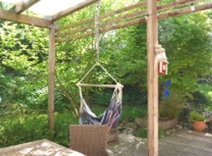 Die südliche Ausrichtung des Gartens sorgt für optimalen Sonnengenuss und bietet Platz für verschiedene grüne Projekte. Vom naturnahen Blumenbeet bis zum ruhigen Gemüsebeet finden Sie hier viele kleine Oasen der Natur.