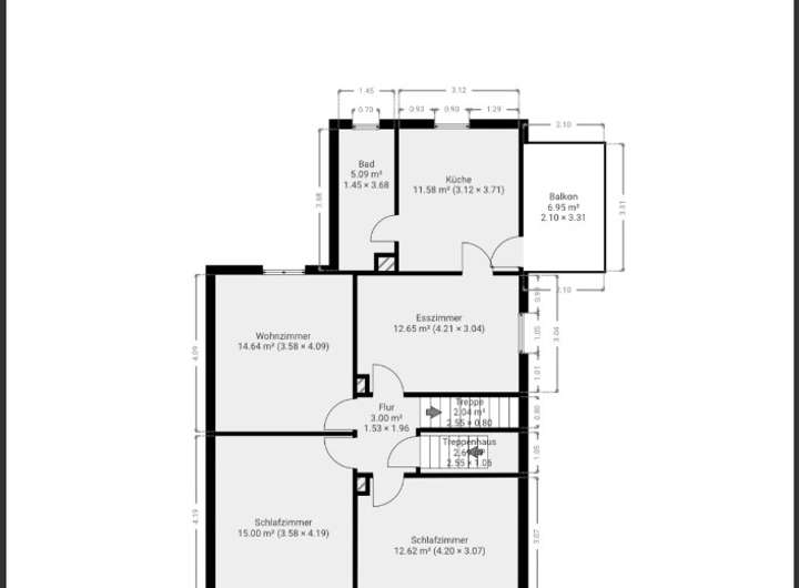 OG: 4 Zimmer, Küche, Vollbad, Balkon