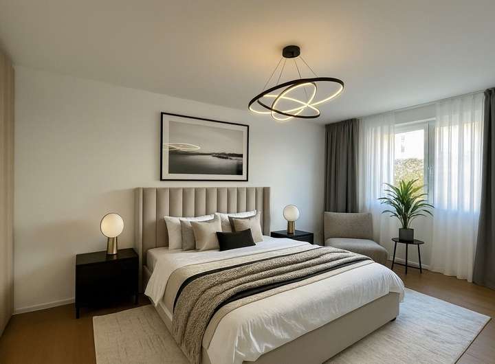 Diese attraktive Erdgeschosswohnung in einem kürzlich fertiggestellten Gebäude bietet eine Wohnfläche von ca. 83,89 m² und umfasst insgesamt drei Zimmer. Dazu gehören ein gemütliches Hauptschlafzimmer sowie ein weiteres Zimmer, das sich ideal als Kinderzimmer oder Homeoffice eignet. Abgerundet wird das Raumangebot durch ein modern ausgestattetes Badezimmer.