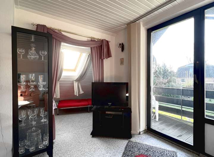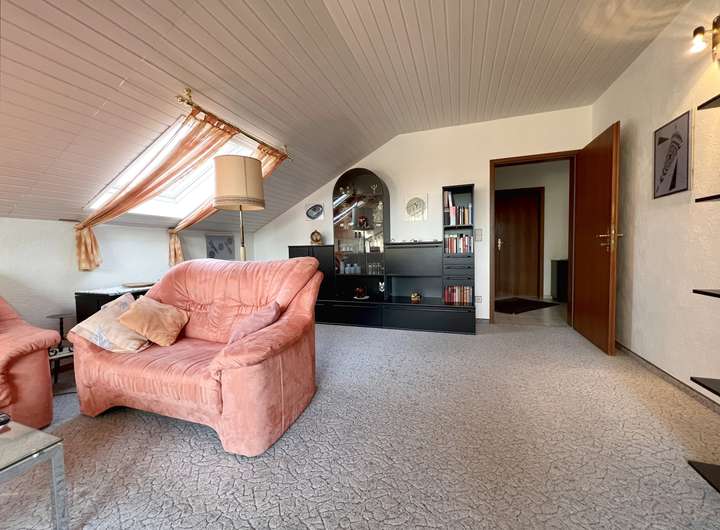 Zur Vermietung steht eine ca. 69 m² große und sehr gepflegte 2-Zimmer-Wohnung, gelegen im ausgebauten Dachgeschoss eines ansprechenden Einfamilien-/Architektenhauses. Das Erdgeschoss wird von den Eigentümern bewohnt.