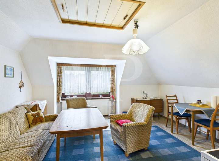 Das Obergeschoss überzeugt mit zwei weiteren Schlafzimmern, einem zusätzlichen Badezimmer und einem offenen Wohn- und Küchenbereich, der vielfältige Nutzungsmöglichkeiten eröffnet. Ob als separate Wohneinheit, Rückzugsort für heranwachsende Kinder, Atelier oder Arbeitsbereich – hier lässt sich Wohnraum individuell und bedarfsgerecht gestalten.