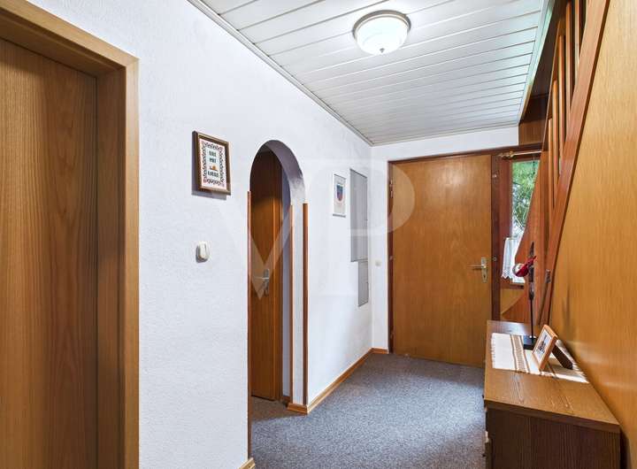 Beim Betreten des Hauses empfängt Sie eine helle und großzügige Diele, die ein Gefühl von Offenheit und Weite vermittelt. Von hier aus gelangen Sie in alle Räume des Erdgeschosses – der klassische, durchdachte Grundriss sorgt für ein angenehmes Wohngefühl und fließende Übergänge zwischen den Bereichen.