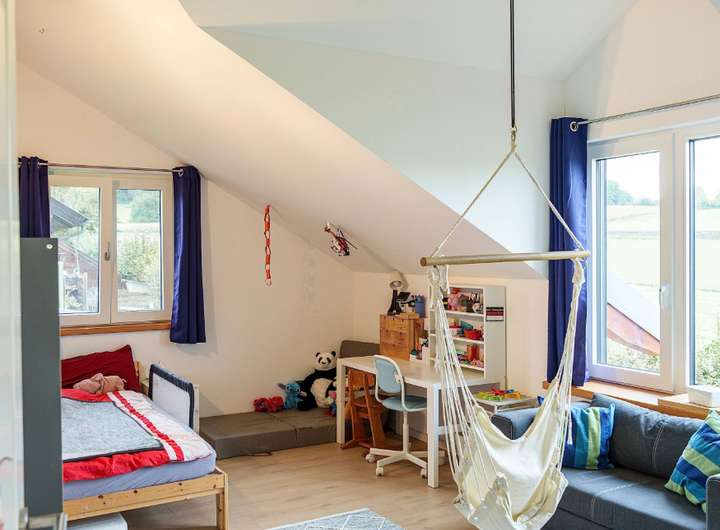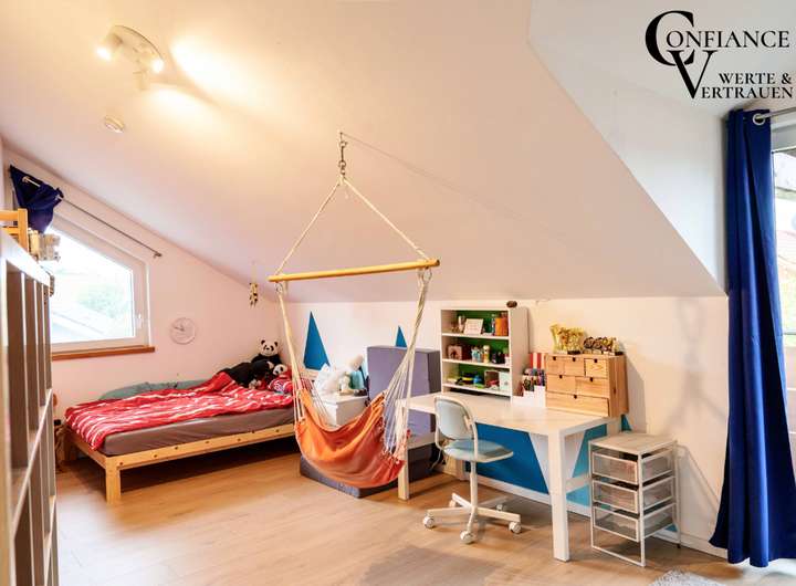 Insgesamt stehen in der Immobilie vier Schlafzimmer zur Verfügung, die vielseitig nutzbar sind – ob als Kinderzimmer, Gästezimmer oder Homeoffice.