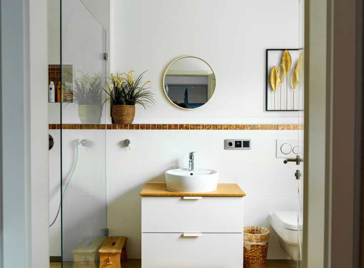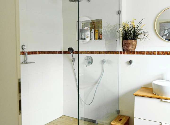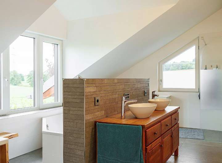 Die 2,5 Bäder sind modern gestaltet und bieten Komfort auf jedem Stockwerk.