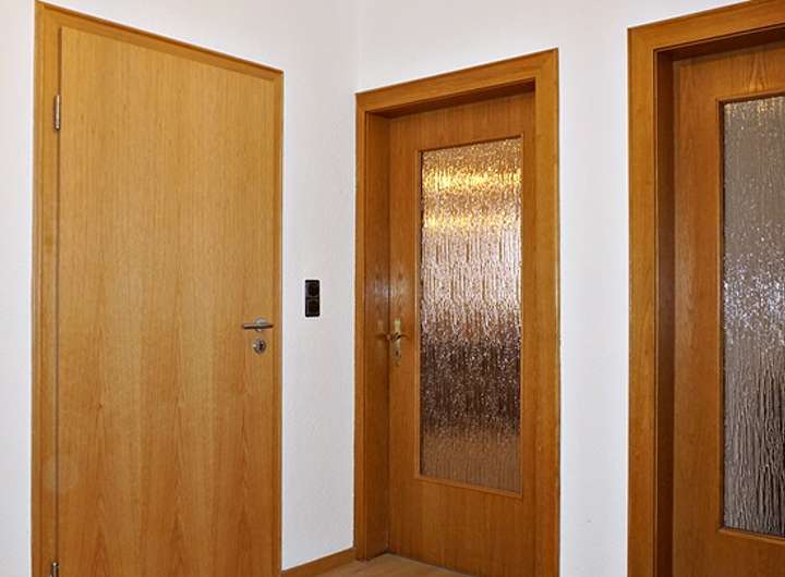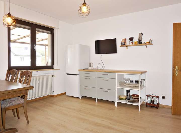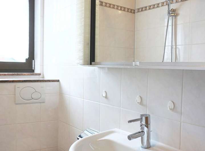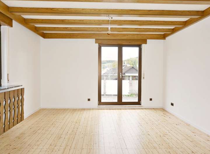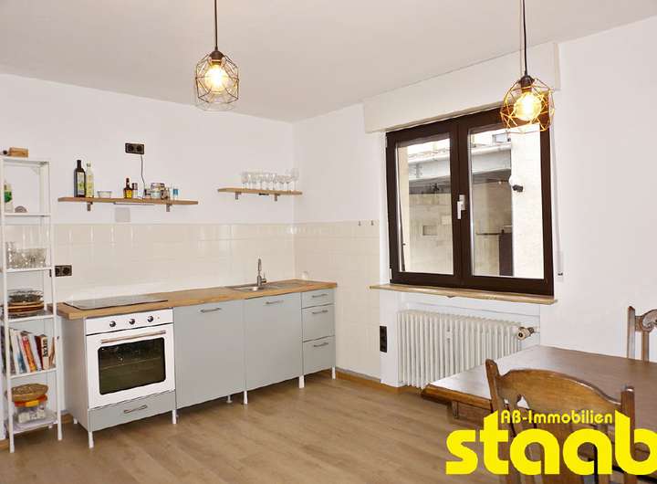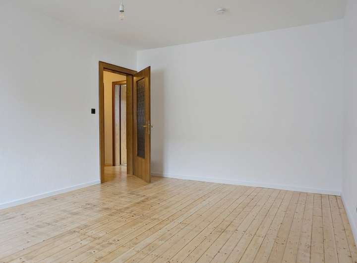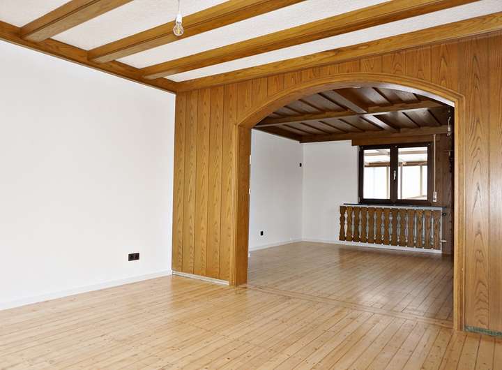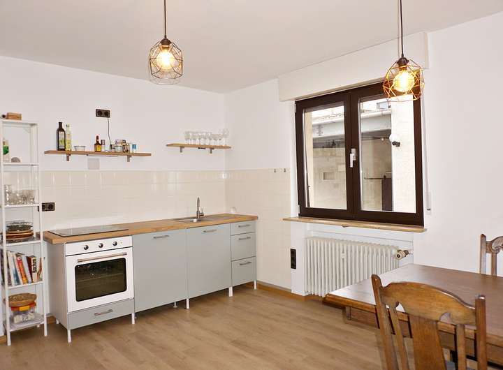 Beginnen wir im Erdgeschoss, hier wartet eine renovierte 3-Zimmerwohnung auf Sie. Die Wohnküche lädt zum gemeinsamen Kochen ein und ist das Herzstück der Wohnung. Die abgebildete Küche sollte für 1.500EUR übernommen werden (Induktionskochfeld, Backofen, Spülmaschine, Kühl- und Gefrierkombination enthalten). Im angrenzenden Wohnzimmer entspannen Sie abends auf der Couch vor dem Kamin. Das Tageslichtbad wurde vor einigen Jahren altersgerecht umgebaut und wurde mit einer barrierearmen Badewanne ausgestattet. Weitestgehend ist Echtholzparkett verlegt, in Küche und Flur entschied man sich für ein robusten Vinylfußboden. Abgerundet wird diese Etage durch zwei Schlafräume und einen Balkon am Wohnzimmer.