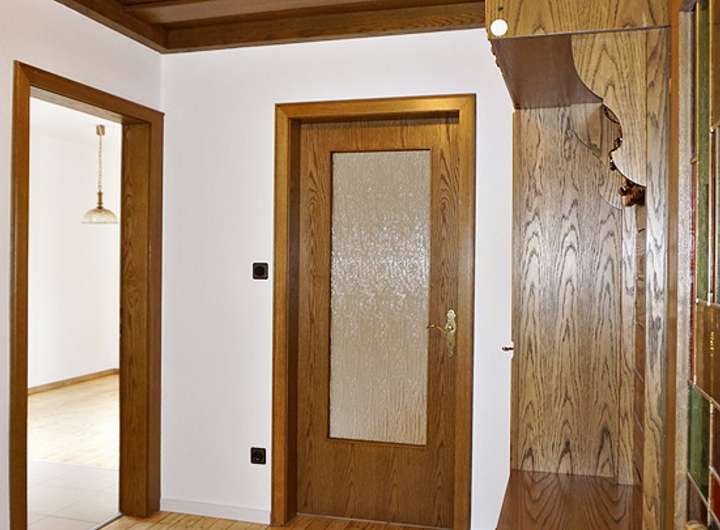 Flur Wohnküche (EBK: Ablöse) Wohnzimmer mit Kamin und Zugang auf den Balkon Tageslichtbad mit Wanne und Duschvorrichtung Kinder-/Arbeitszimmer Schlafzimmer