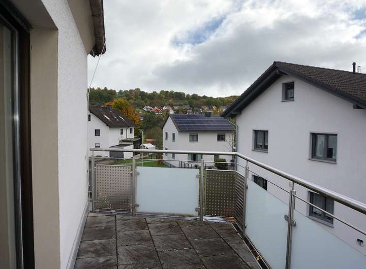 Flur geräumiges Wohn-/Esszimmer mit Balkon saniertes Duschbad Wohnküche Schlafzimmer