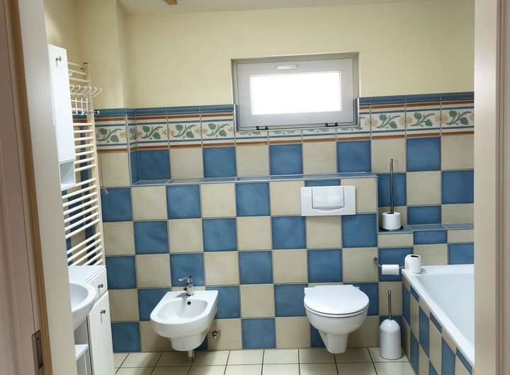 Das Vorderhaus (ca. 90 m²) präsentiert sich als eigenständige, flexibel nutzbare Einheit – ausgestattet mit einem modernen Bad, einem Gäste-WC sowie stilvollen Fliesen- und Dielenböden.