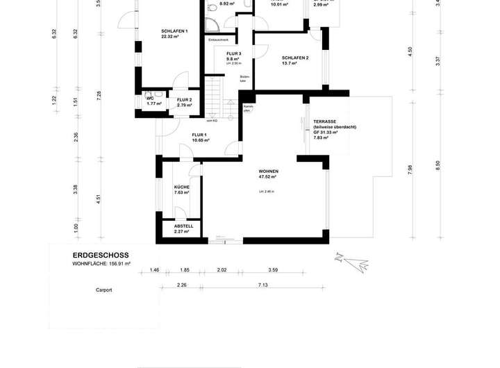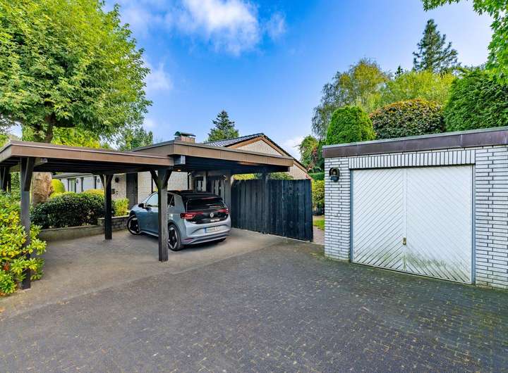 Stellplätze für Ihren PKW sind mit einer Garage und einem Doppelcarport gegeben.