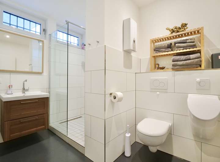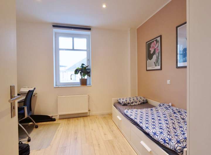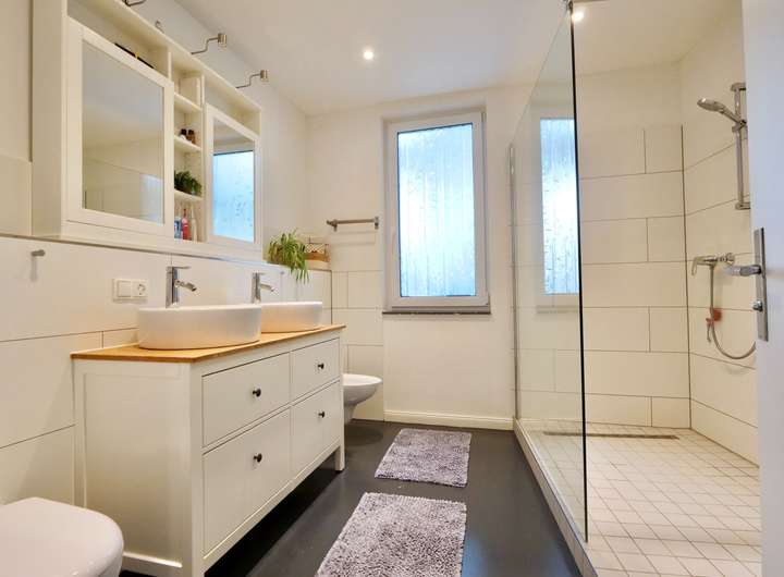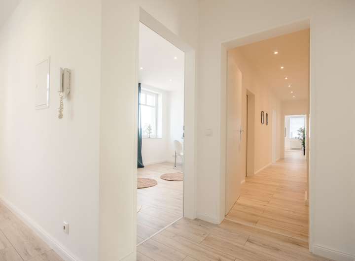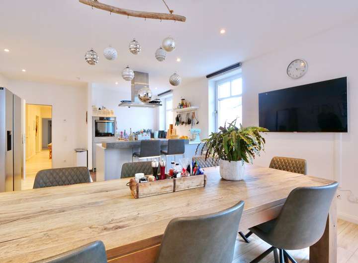 Diese Eigentumswohnung im 1. Obergeschoss eines 1936 erbauten und im Jahre 2000 umfassend kernsanierten Hauses, bietet mit ca. 238 m² Wohnfläche und 6,5 Zimmern viel Platz für individuelle Lebens- und Nutzungskonzepte. Die Wohnung ist bis zum 31.12.2025 vermietet und eignet sich daher ideal als Kapitalanlage in gefragter City-Lage. Das Raumangebot überzeugt mit einer offenen Gestaltung und flexiblen Grundrissmöglichkeiten. Die derzeitige Nutzung als Wohngemeinschaft zeigt eindrucksvoll das Potenzial dieser Immobilie, großzügige Zimmer, gemeinschaftliche Aufenthaltsbereiche sowie moderne Bäder (erneuert 2017) machen diese Einheit äußerst attraktiv für vielfältige Wohnformen. Ein Highlight ist die ruhige, nach hinten ausgerichtete Terrasse, die trotz der zentralen Lage eine entspannte Privatsphäre bietet. Die hochwertige Ausstattung umfasst hochwertige Fenster, die Fußbodenheizung und moderne Bodenbeläge im Industrie-Look.