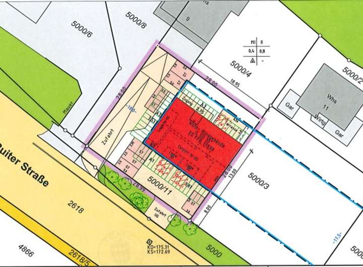 Zum Verkauf steht ein Baugrundstück mit einer Baugenehmigung zur Errichtung eines Mehrfamilienhauses mit 3 Wohnungen und einer Gewerbeeinheit.