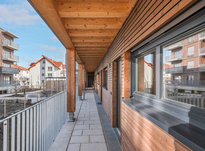 Die großzügige Freiflächenplanung und die Hofanlage zwischen den Gebäuden schaffen Freiraum für Generationen und eine gelungene Kombination persönlicher Freiheit und beschütztem Wohnen – in ruhiger Lage und guter Nachbarschaft.