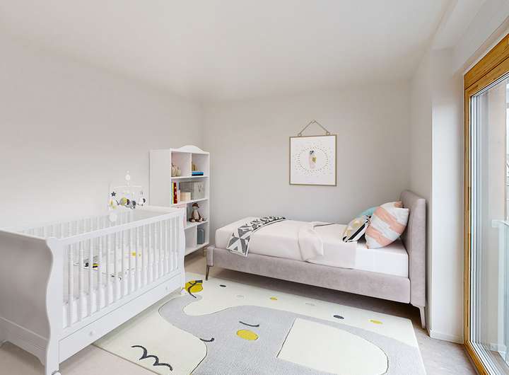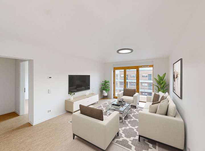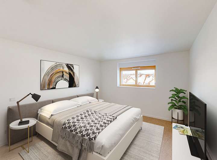 Diese 4-Zimmer-Wohnung ist Teil des Neubauprojekts TimberQuartett in Künzelsau. Sie ist kompakt und komfortabel gestaltet und verfügt über ein Elternschlafzimmer und ein zusätzliches Zimmer, das entweder als Kinderzimmer oder als individueller Raum genutzt werden kann. Der Wohnbereich ist vom Koch- und Essbereich getrennt und bietet Zugang zum Balkon oder zur Terrasse. Die Wohnung verfügt zusätzlich über ein Badezimmer sowie eine praktische Abstellkammer.