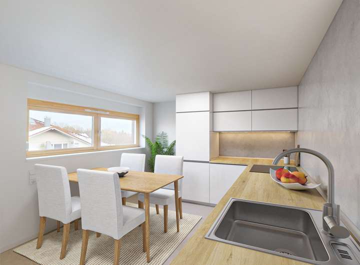 Bei den Bildern handelt es sich um unverbindliche Visualisierungen (Visualisierung TOWN) und Bilder der Musterwohnung. Gerne können Sie sich im Zuge einer Besichtigung der Musterwohnung selbst vom TimberQuartett überzeugen.