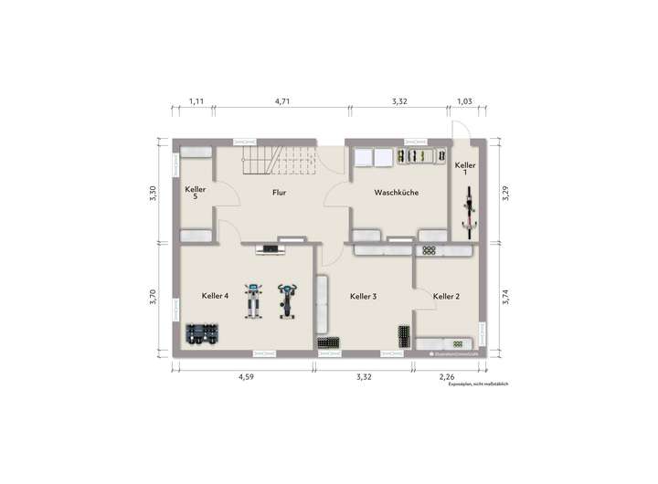 KG: 5 Kellerräume, Waschküche, Flur