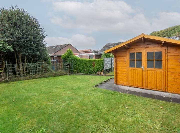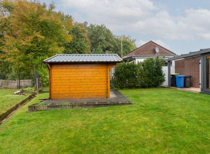 Der liebevoll gepflegte Garten ist pflegeleicht angelegt und bietet mit einem massiven Holz-Gartenhaus zusätzlichen Platz für Gartengeräte oder Fahrräder. Hier genießen Sie die Ruhe und Natur des Ferienparks in vollen Zügen.