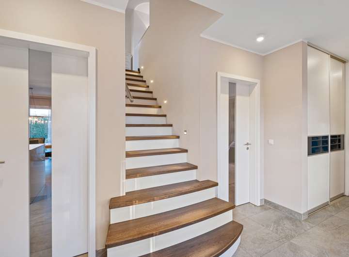 _Offene Massivholztreppe mit Beleuchtung