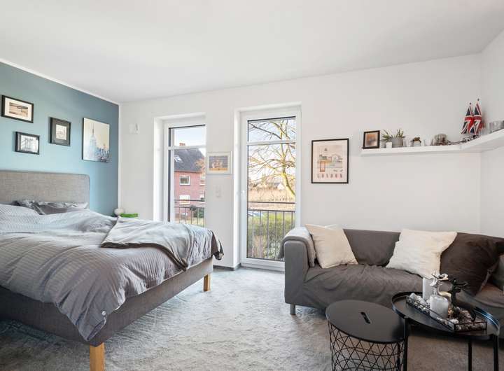 _Obergeschoss: drei Schlafzimmer, Hauptschlafzimmer mit en Suite Vollbad von Villeroy & Boch und Balkon